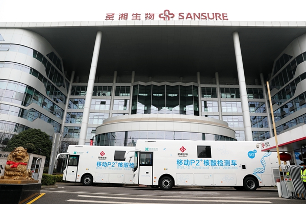 目前,北京、广东、黑龙江、四川、山东等多省均已配置移动核酸检测车。PA电子科技生物此次投入使用的移动P2+核酸检测车共2台,为湖南省首批投入使用的移动核酸检测车,可实现采样、检测、报告一站式服务,2台日检测量(10混1)可达10万人份,最快45分钟内出结果!